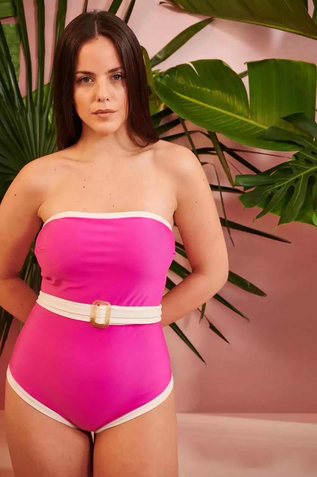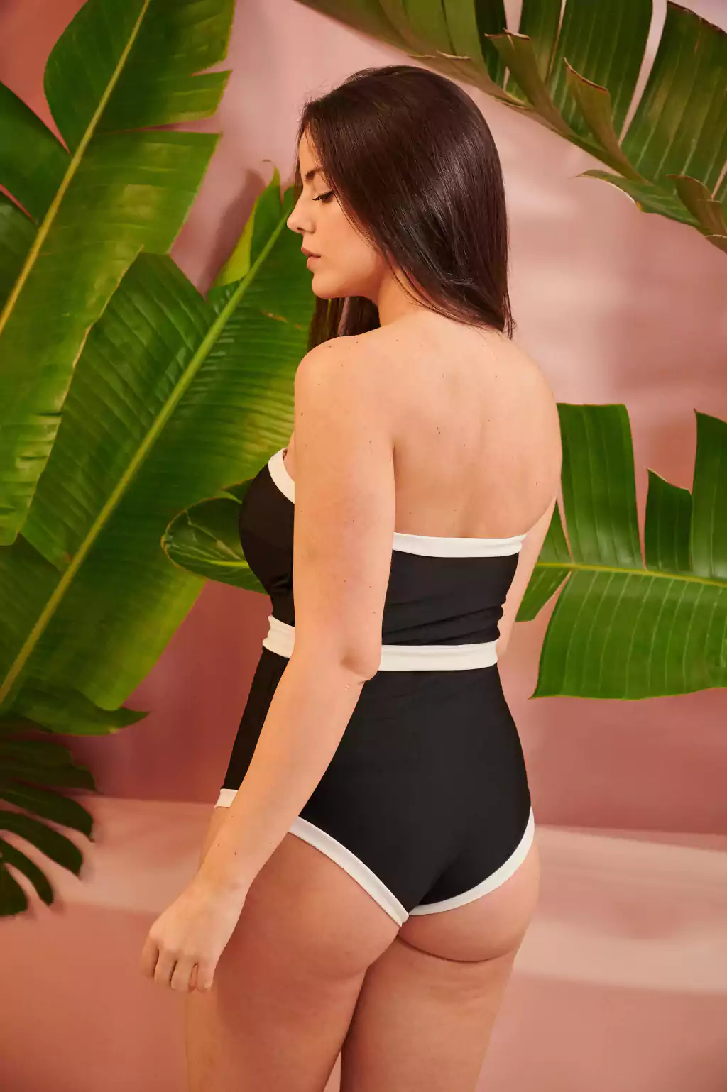Eva es un traje de baño enterizo strapless, confeccionado en lycra suave y completamente forrado. Su diseño te permite llevarlo sin tiras o con la opción de tiras desmontables que se atan al cuello.